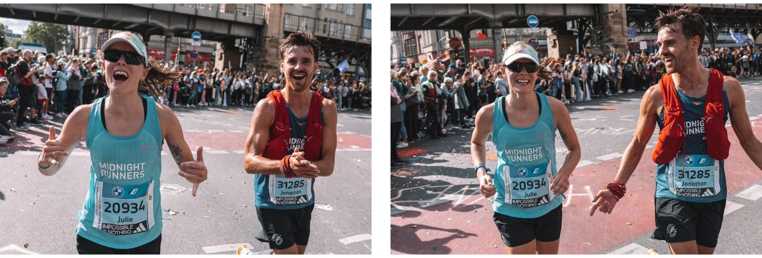Images of Julie and Jonathan competing in the Berlin Marathon. Photo credit: @lexmouth